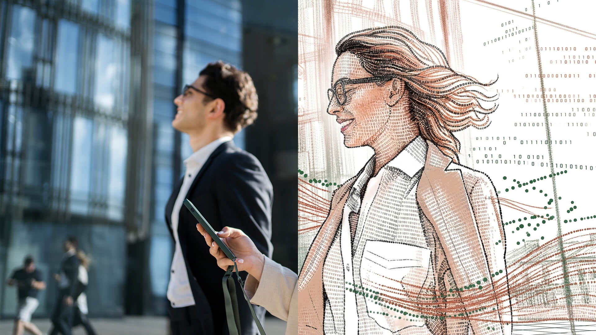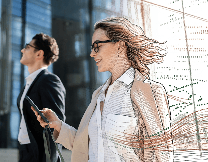 Photoreal real-world imagery maintained with full detail and overlaid with a bespoke, scalable AI-driven brand aesthetic.